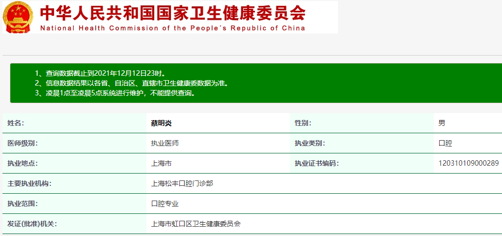 坐診醫(yī)院:上海松豐口腔(松豐口腔門診部)